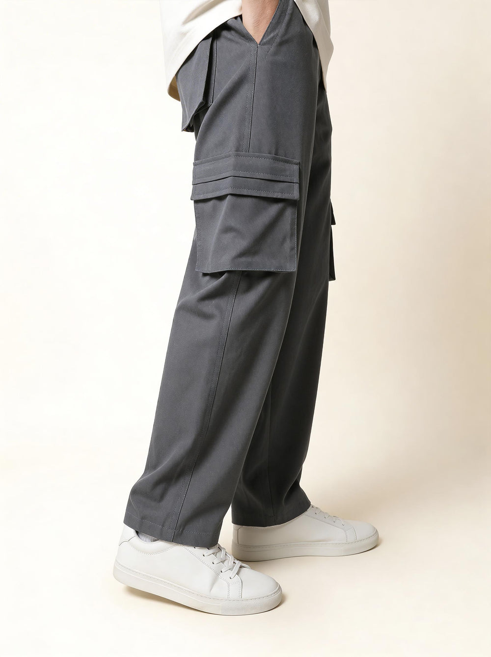 Beige Oversized Cargo Pants